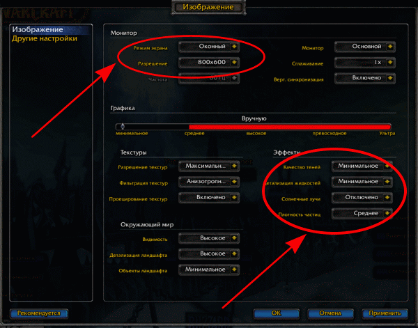 Все видеоэффекты ставим на минимум. Новое начиная с патча 4.0.3а - Выставляем мастаб интерфейса равным 1.0